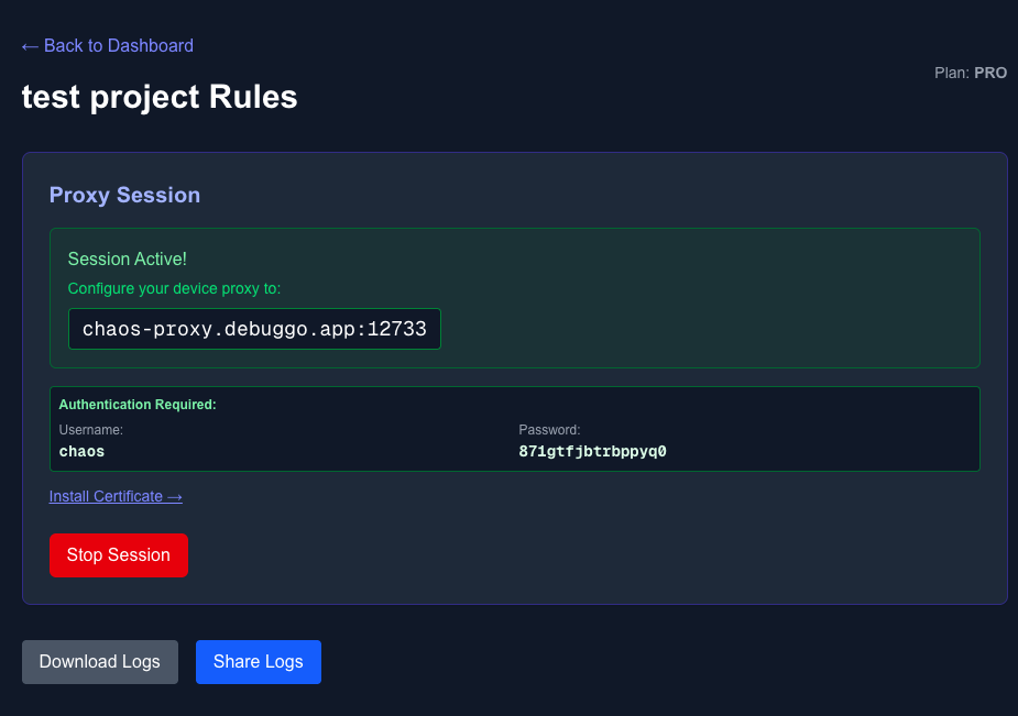 Built on battle-tested open source technologies. Each proxy session spins up an isolated Docker container running mitmproxy. Logs are synced via Redis and automatically deleted after 24h (TTL).