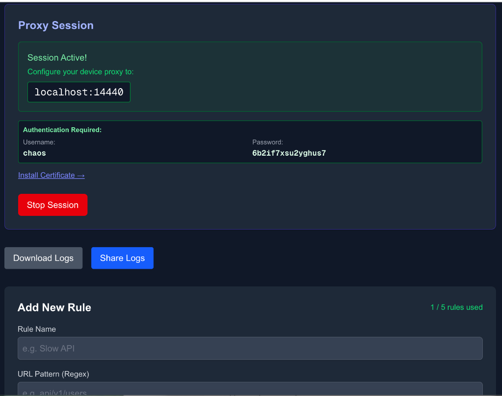 Debuggo Chaos Proxy takes a different approach. Instead of running on your laptop, the proxy runs in the cloud.