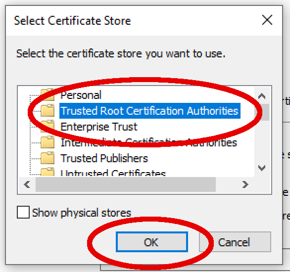 - Windows (Crucial): Double-click .crt -> Install Certificate -> Current User -> Place all certificates in the following store -> Trusted Root Certification Authorities. (Default "Next" will NOT work).